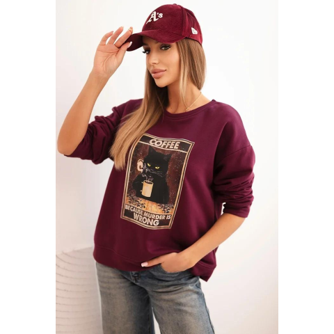 1 kép FiatalDivat Pamut pulóver elöl nyomtatással, 2818-as modell, sötét lila