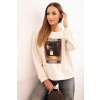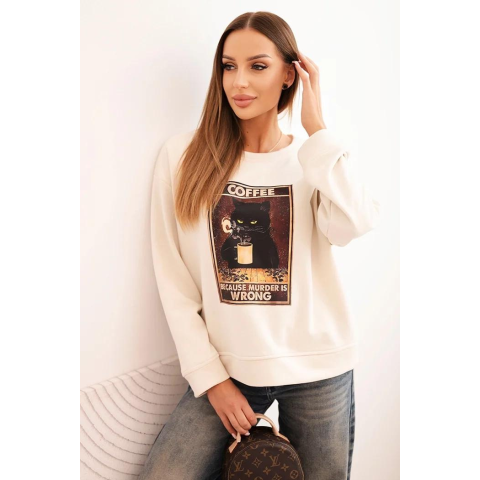 1 kép FiatalDivat Pamut pulóver elöl nyomtatással, 2818-as modell, világos bézs