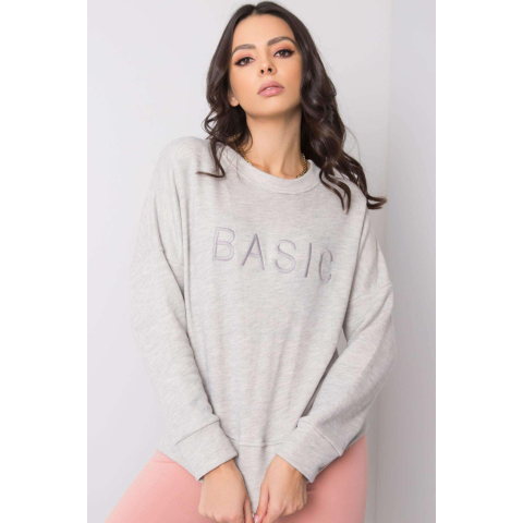1 kép FiatalDivat Pamut pulóver hímzett Basic világosszürke felirattal