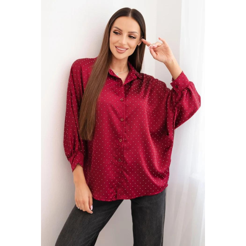 1 kép FiatalDivat Pöttyös viszkóz blúz gombokkal és gallérral 5337-es modell bordó