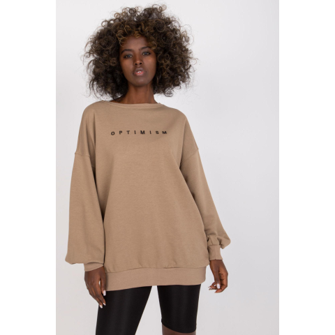 1 kép FiatalDivat Pulóver hímzett Optimism sötétbézs felirattal