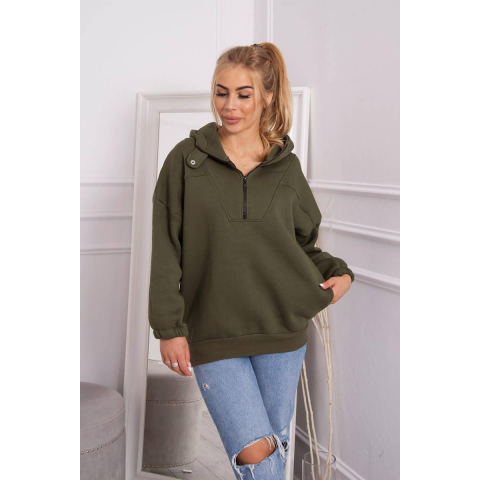 1 kép FiatalDivat Pulóver kapucnival és cipzárral a nyakkivágásban, 69424 modell, khaki színű