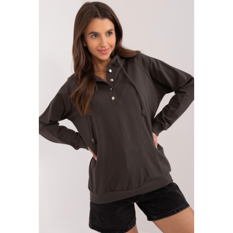 1 kép FiatalDivat Pulóver kapucnival és gombokkal a nyakkivágásban, 20036-os modell, khaki színű