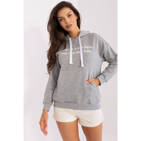 1 kép FiatalDivat Pulóver kapucnival és hímzett felirattal, modell 56390 szürke