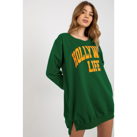 1 kép FiatalDivat Pulóver meghosszabbított hátrésszel, Hollywood Life sötétzöld + narancssárga felirattal