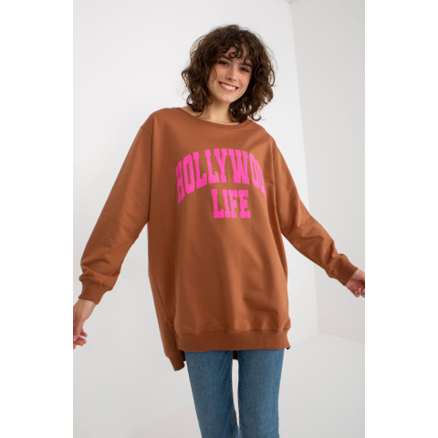 1 kép FiatalDivat Pulóver meghosszabbított hátrésszel, Hollywood Life teve+rózsaszín felirattal