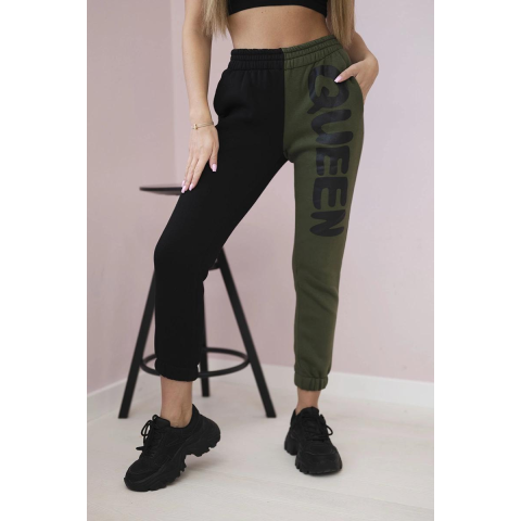 1 kép FiatalDivat QUEEN feliratú melegítőnadrág khaki+fekete színben
