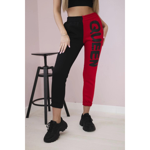 1 kép FiatalDivat QUEEN feliratú melegítőnadrág piros+fekete