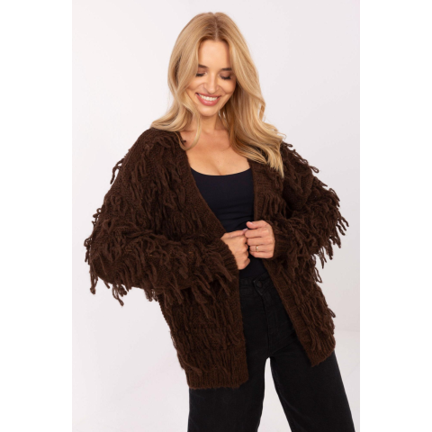 1 kép FiatalDivat Rövid kardigán pulóver rojtokkal, 30821-es modell, barna