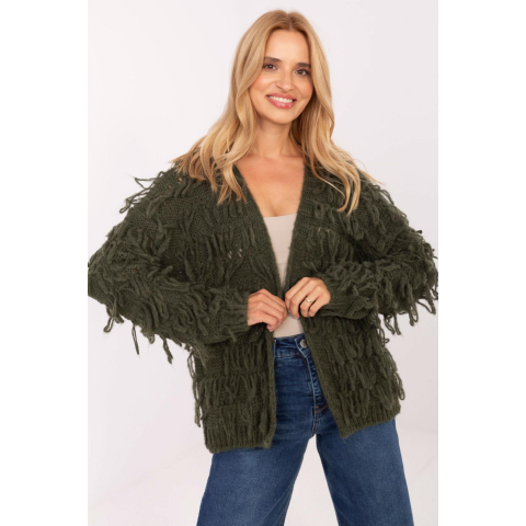 1 kép FiatalDivat Rövid kardigán pulóver rojtokkal, 30821-es modell, khaki színben