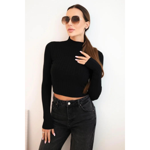 1 kép FiatalDivat Rövid pulóver blúz állógallérral ZS5135 modell fekete