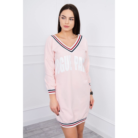 Bemutatjuk Önnek ezt a kényelmes ruhát V betűs kivágással és Vogue Paris felirattal.