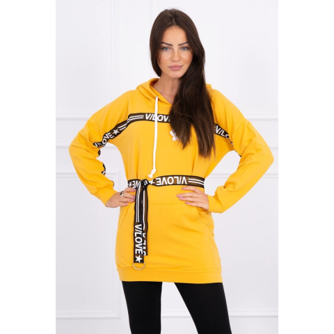 Bemutatjuk Önnek ezt a stílusos ruhát kapucnival és divatos szíjjal.