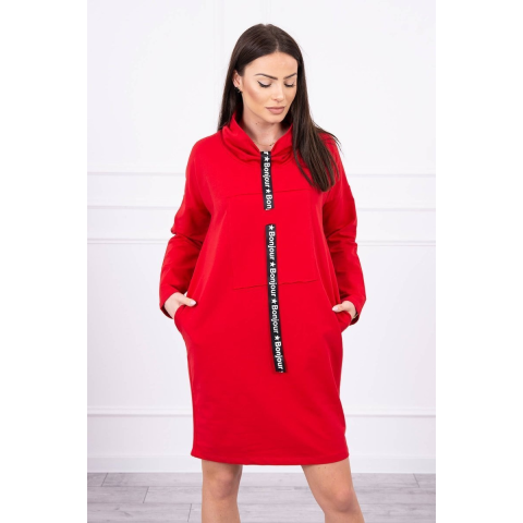 1 kép FiatalDivat Ruha zsebekkel és nyakkendő alakú csíkkal modell 0153 piros