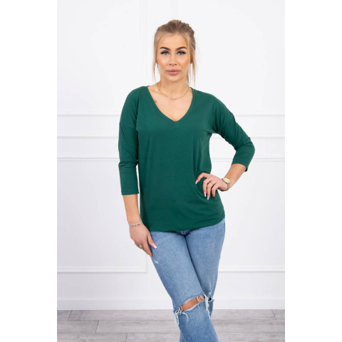 1 kép FiatalDivat Sötétzöld blúz V-nyakú, háromnegyedes ujjú