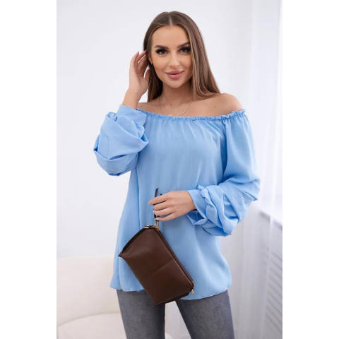 1 kép FiatalDivat Spanyol blúz dekoratív ujjakkal, világoskék modell IT-15