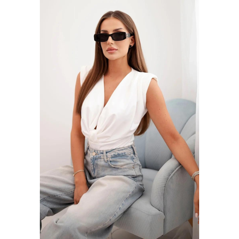 1 kép FiatalDivat Szatén testblúz mély nyakkivágással, 10047-es modell, ekrü színű