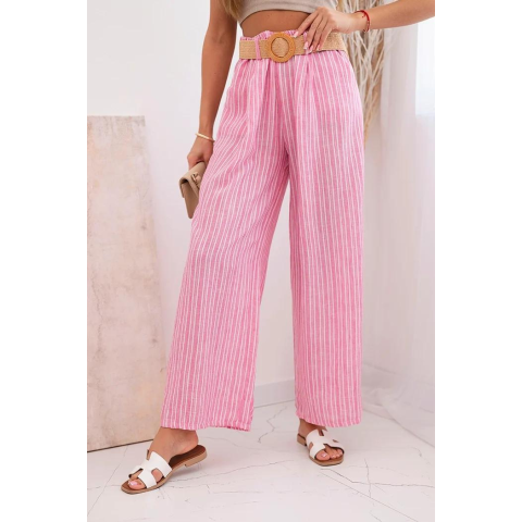 1 kép FiatalDivat Széles csíkos nadrág övvel, 9806-2 modell, rózsaszín