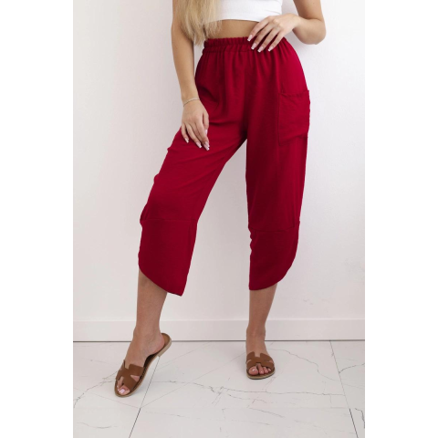 1 kép FiatalDivat Széles háromnegyedes melegítőnadrág zsebekkel, IT-37 bordó modell