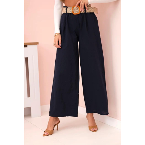 1 kép FiatalDivat Széles lenvászon nadrág övvel, 9806-1 modell, tengerészkék színben