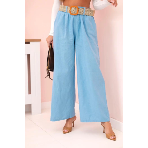 1 kép FiatalDivat Széles lenvászon nadrág övvel, 9806-1 modell, világoskék