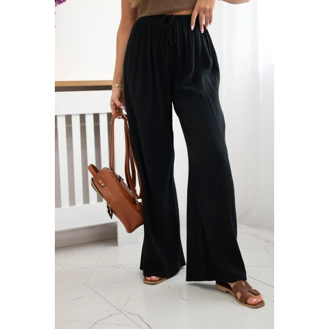 1 kép FiatalDivat Széles muszlin nadrág 3204-es fekete