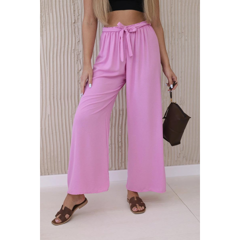 1 kép FiatalDivat Széles nadrág derékban megkötős, 5878-as modell, élénk rózsaszín