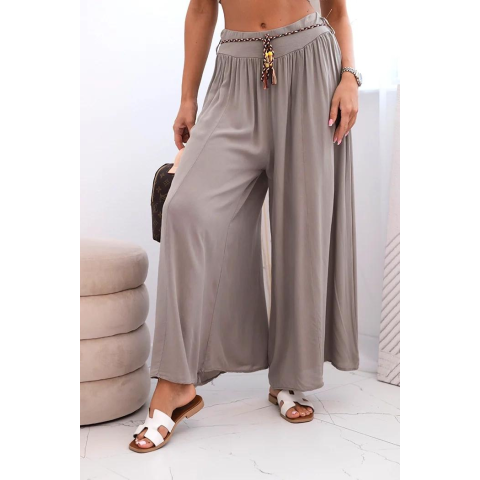 1 kép FiatalDivat Széles viszkóz nadrág derékmegkötővel, 81733-as modell, fango színben