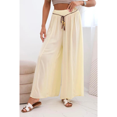 1 kép FiatalDivat Széles viszkóznadrág derékmegkötővel, 81733-as modell, világos sárga