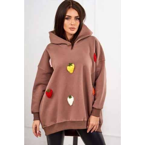 1 kép FiatalDivat Szigetelt pulóver epres foltokkal, 9629-es modell, mokka színű