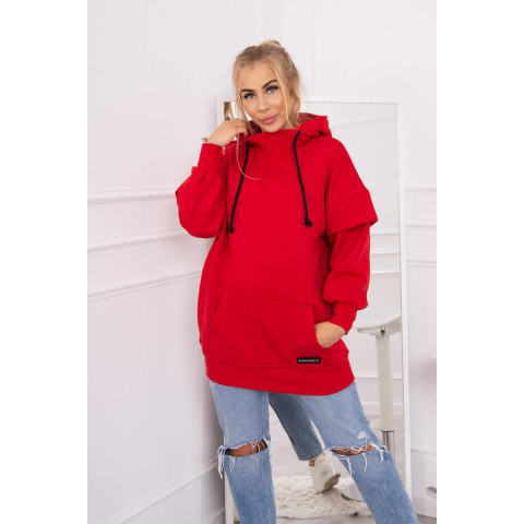 1 kép FiatalDivat Szigetelt pulóver kenguru zsebbel és kapucnival modell 69426 piros