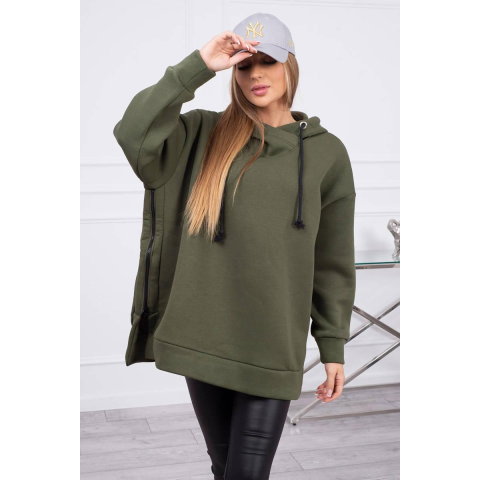 1 kép FiatalDivat Szigetelt pulóver, oldalán cipzárral, 9380-as modell, khaki színű