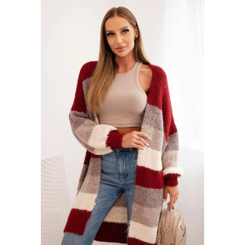 1 kép FiatalDivat Többszínű csíkos kardigán pulóver IT87 bordó modell