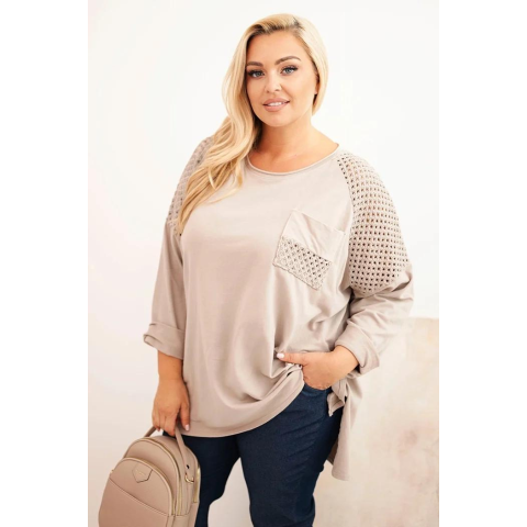 1 kép FiatalDivat Túlméretezett pulóver perforált applikációval, 3790-es modell, bézs