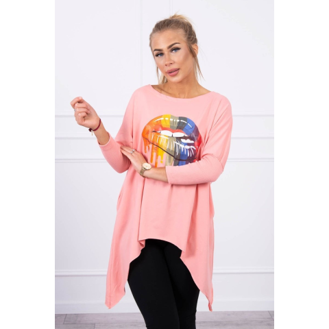 1 kép FiatalDivat Tunika szivárvány toll nyomtatással modell 9006 sárgabarack színű