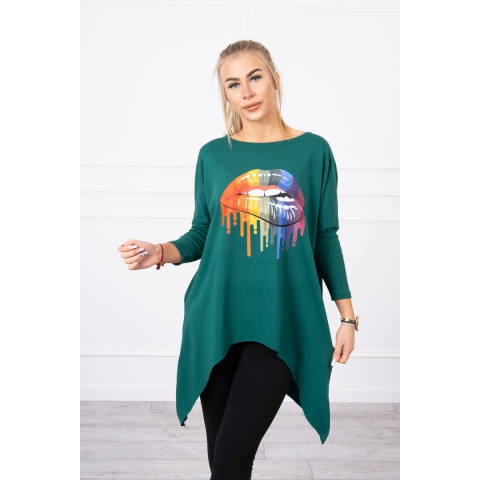 1 kép FiatalDivat Tunika szivárvány toll nyomtatással modell 9006 zöld
