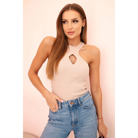 1 kép FiatalDivat Ujjatlan blúz kivágással és díszes csattal, 68906-os modell, bézs