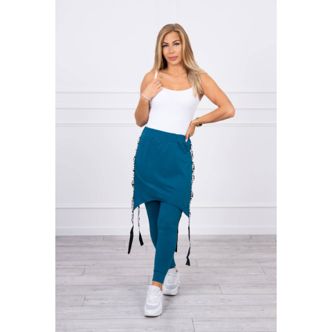 1 kép FiatalDivat Vállpántos nadrág á la overál Selfie felirattal sötét türkisz kék