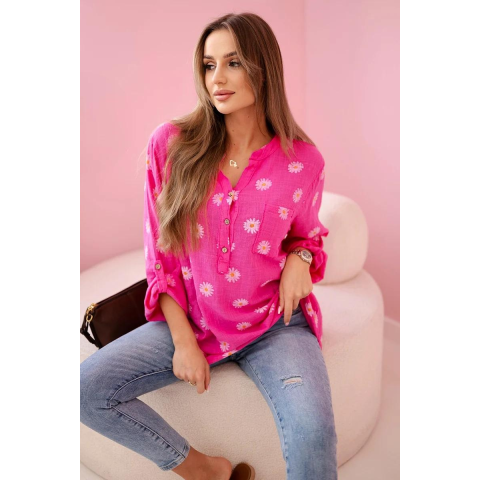 1 kép FiatalDivat Vászon blúz virágokkal, hosszú ujjú gombokkal, 22062 rózsaszín modell