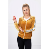 1 kép FiatalDivat Velúr melegítő felső kapucnival és csíkokkal az ujjakon modell 9101 mustár szín
