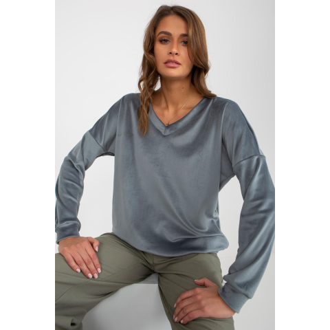 1 kép FiatalDivat Velúr pulóver V-nyakú 44107 világosszürke modell