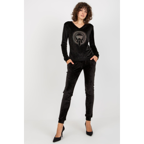 1 kép FiatalDivat Velúr tréningruha garnitúra 44223 fekete modell elöl
