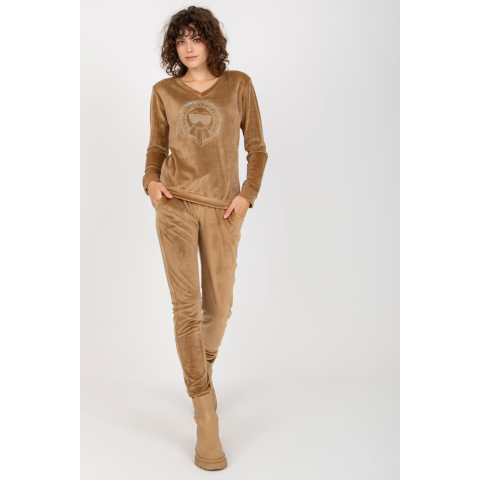 1 kép    FiatalDivat Velúr tréningruha szett elöl rátéttel, modell 44223 színes teve