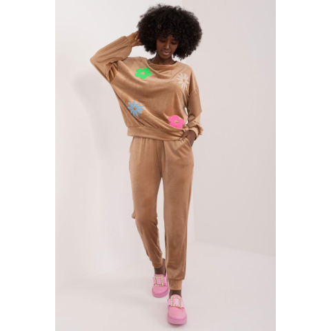 1 kép FiatalDivat Velúr tréningruha szett virágokkal, modell 65505 bézs