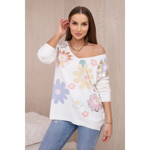 1 kép FiatalDivat Virágos motívumú pulóverblúz HN0033-1 világossárga + világoskék modell