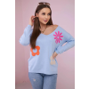 1 kép FiatalDivat Virágos motívumú pulóverblúz HN0033-2 világoskék modell