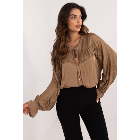 1 kép FiatalDivat Viskóz ingblúz fodrokkal, modell 02216 színes teve