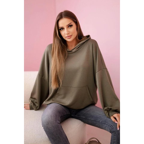 1 kép FiatalDivat Viskóz pulóver kapucnival és kenguru zsebbel 7273-as modell, khaki színű