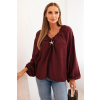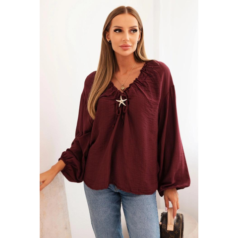1 kép FiatalDivat Viszkóz blúz fodros nyakkivágással és brossal, 92320 bordó modell