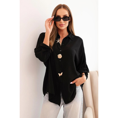 1 kép FiatalDivat Viszkóz ingblúz díszgombokkal, 61953-as modell, fekete